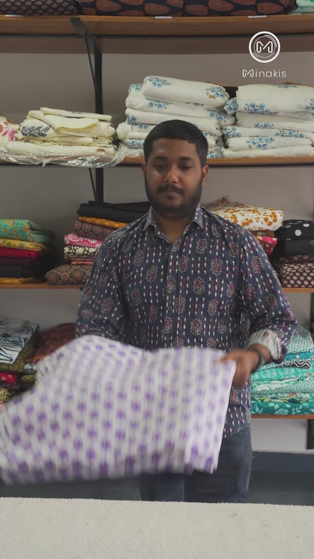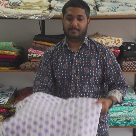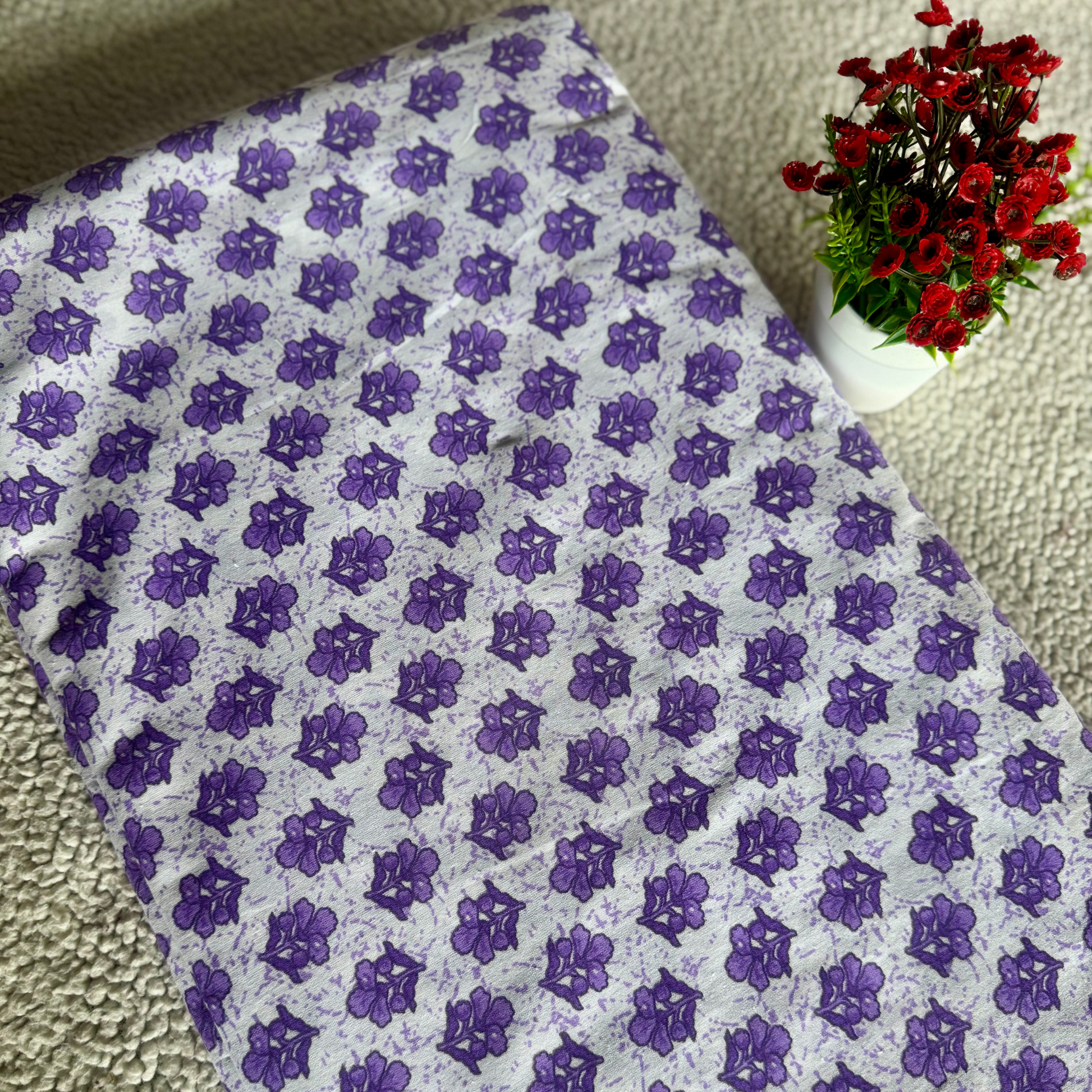 Small Purple Floral Screen Printed Cotton Fabric – Soft & Breathable